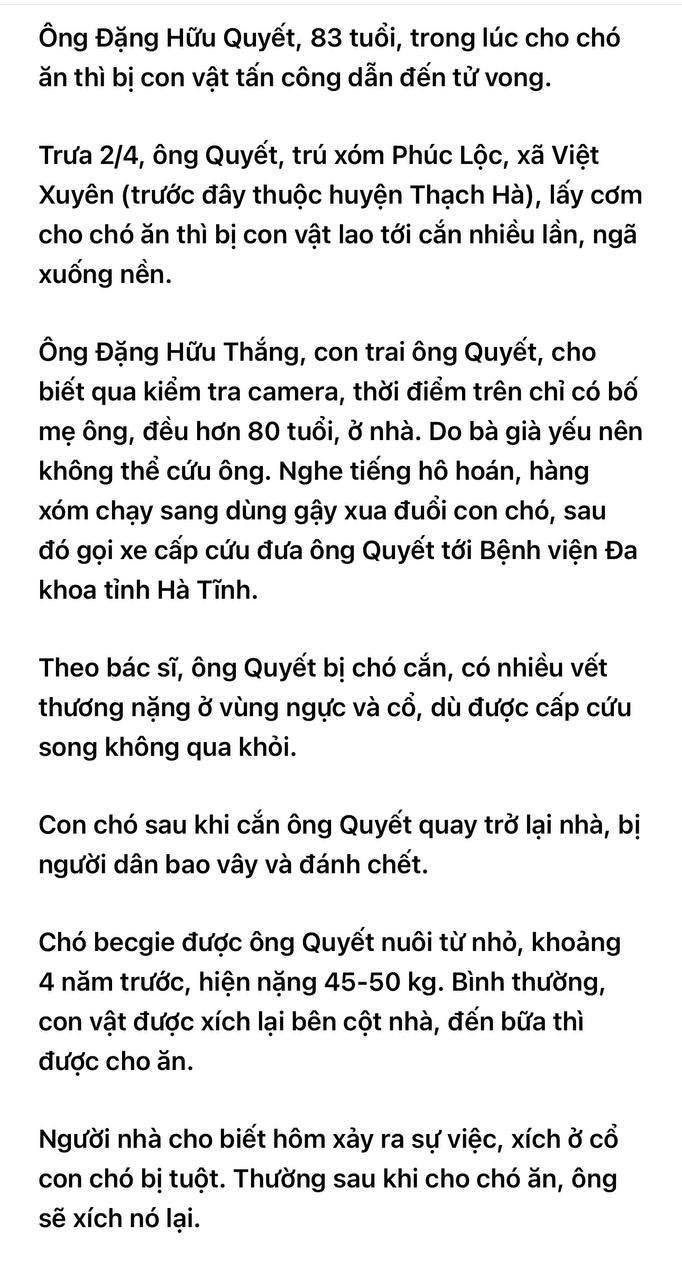 Chó becgie xích bị xổng ra cắn ông chủ nhà 83 tuổi đứt cổ họng, đứt tai tuvonghttps://tinhot.org/wp-content/uploads/2026/04/7868702113950352474.mp4 Điều hướng bài viếtĐồng Nai: Nghi án con trai sát hại mẹ tại nhà riêng, đang điều tra làm rõ Chị em cận thận nhé